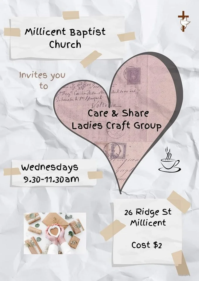 Care & Share Ladies Craft Group - Wednesdays 9.30am to 11.30am.